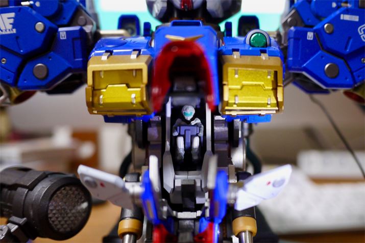 コックピットハッチも開閉します。個体差かもしれませんが、最初はちょっと硬めでした。でも一度開けるとスムーズに開閉するようになりましたよ。細かいパーツが集中しているので、開閉する際は力の入れ方に注意しましょう