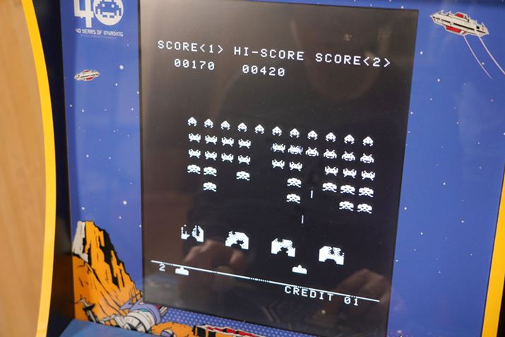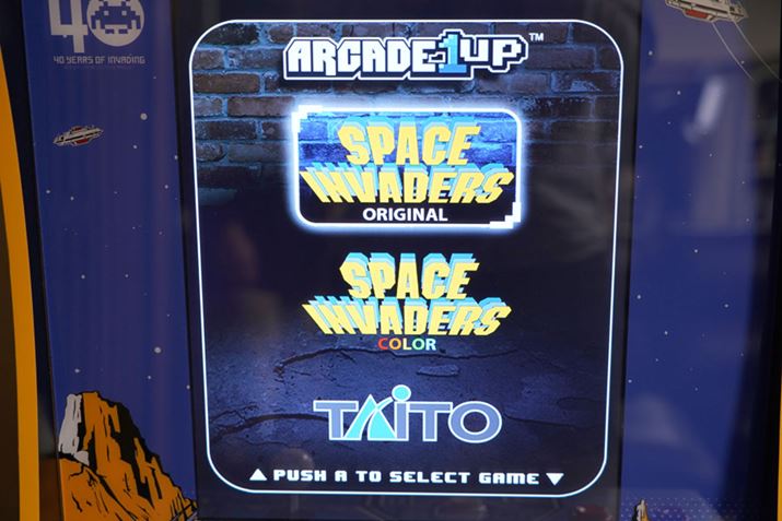 タイトル画面が表示されました! なお、「ARCADE1UP」には「スペースインベーダー オリジナル」と「スペースインベーダー カラー」が収録されており、1台で2度おいしいです