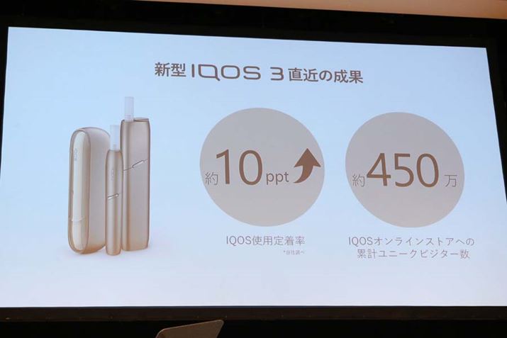 フィリップモリスによると、「アイコス 3」「アイコス 3 マルチ」の売れ行きは非常に好調。両モデル発売により、ユーザーのアイコス使用定着率は約10%アップし、アイコスオンラインストアへの累計ユニークユーザーは450万人を突破したという