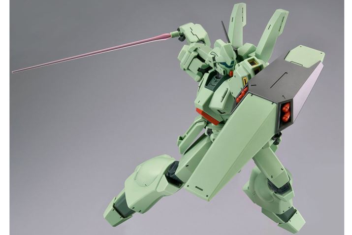 「機動戦士ガンダムUC」「機動戦士ンダムNT」に登場する量産型汎用MSを初のガンプラ化。腕部に内蔵された「ロケットランチャー」の展開ギミックは、差し替えなしで再現できる。「シールドアーム」はフレキシブルに可動。また、サイドアーマーには、「ビーム・サーベル」が収納できる。