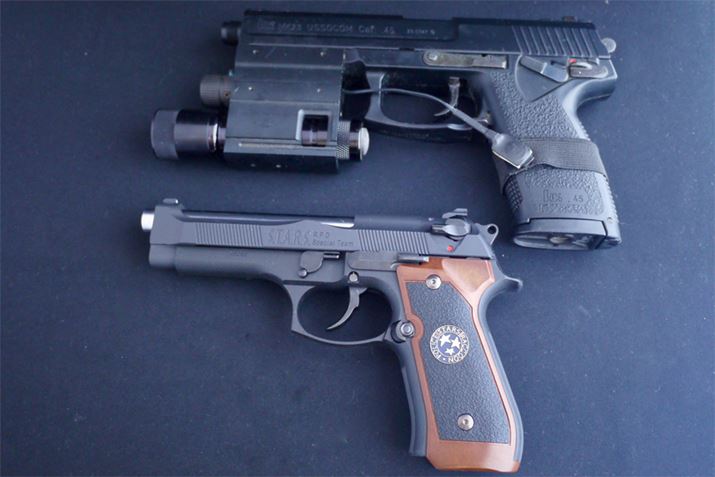 エアソフトガン熱が高まった頃に購入し、ハンドガン単体では飽き足らず、オプションでカスタマイズにまで手を出したエアソフトガンです。こちらは「メタルギアソリッド」で登場したのを見て購入してしまいました。販売元はKSCというメーカーで、オプションにライトやレーザーサイトを付けるカスタムセットを購入して雰囲気を出しています。現在は販売終了してしまっているようです。