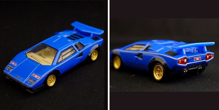 1/61スケールのカウンタック。バックライトの特徴的なデザインも、車高の低さも忠実に再現されています。筆者はカウンタックといえば黄色というイメージがあるのですが、皆さまはいかがでしょう?