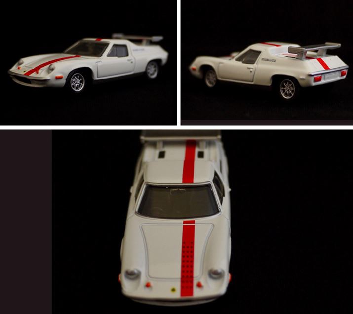 唯一、この車だけトミカプレミアムではなく、ドリームトミカというブランドからの紹介となります。だって外せないでしょう。この車を! 「サーキットの狼」の主人公の愛車、ロータスヨーロッパですよ! しかも「サーキットの狼仕様」ということで、コミックさながらのデザインが施された特別仕様になっています。イギリスが誇る名門ロータスの車種の中でも、異彩を放つリアのデザインはロータスヨーロッパならでは。ドリームトミカもきっちりと再現していますよ。