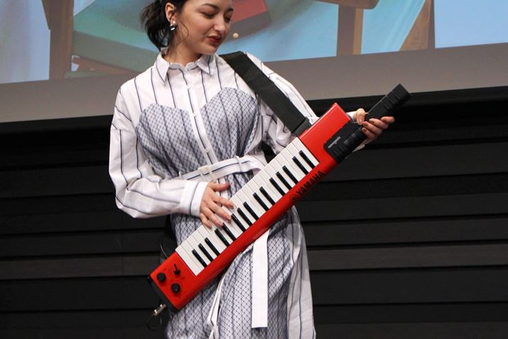 なお、もしかしたらパッと見でピンと来た方もいるかもしれないが、SHS-500の筐体はヤマハの既存モデル「ボーカロイドキーボード」(→詳細はこちら)の設計を受け継いでいる。ヒットモデルの構造を継承しつつ、基本コンセプトがまったく異なる新しい楽器に生まれ変わったのがポイント。
