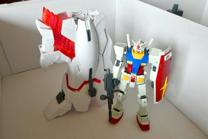 巨大なシールドと「HGUC 1/144 RX-78-2 ガンダム」を比較。もうこれだけでいかに大きいかがわかりますよね