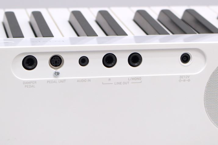 それが、今回のPX-S1000では、本体背面部に3本ペダル用の接続端子が配置され、本体に直接接続できるようになったのです。つまり、据え置き用のスタンドを使わなくてもイイようになっているわけ。PX-S1000を単体で好きな場所に置いて弾くという演奏スタイルが、こういったスペックにも現れていると言えるでしょう。