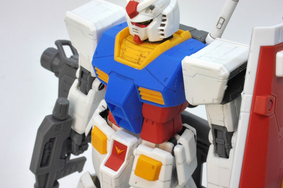 写真のガンダムは当時のVer.G30thにスミ入れをし、微塗装+スミ入れ後つや消しフィニッシュした状態です