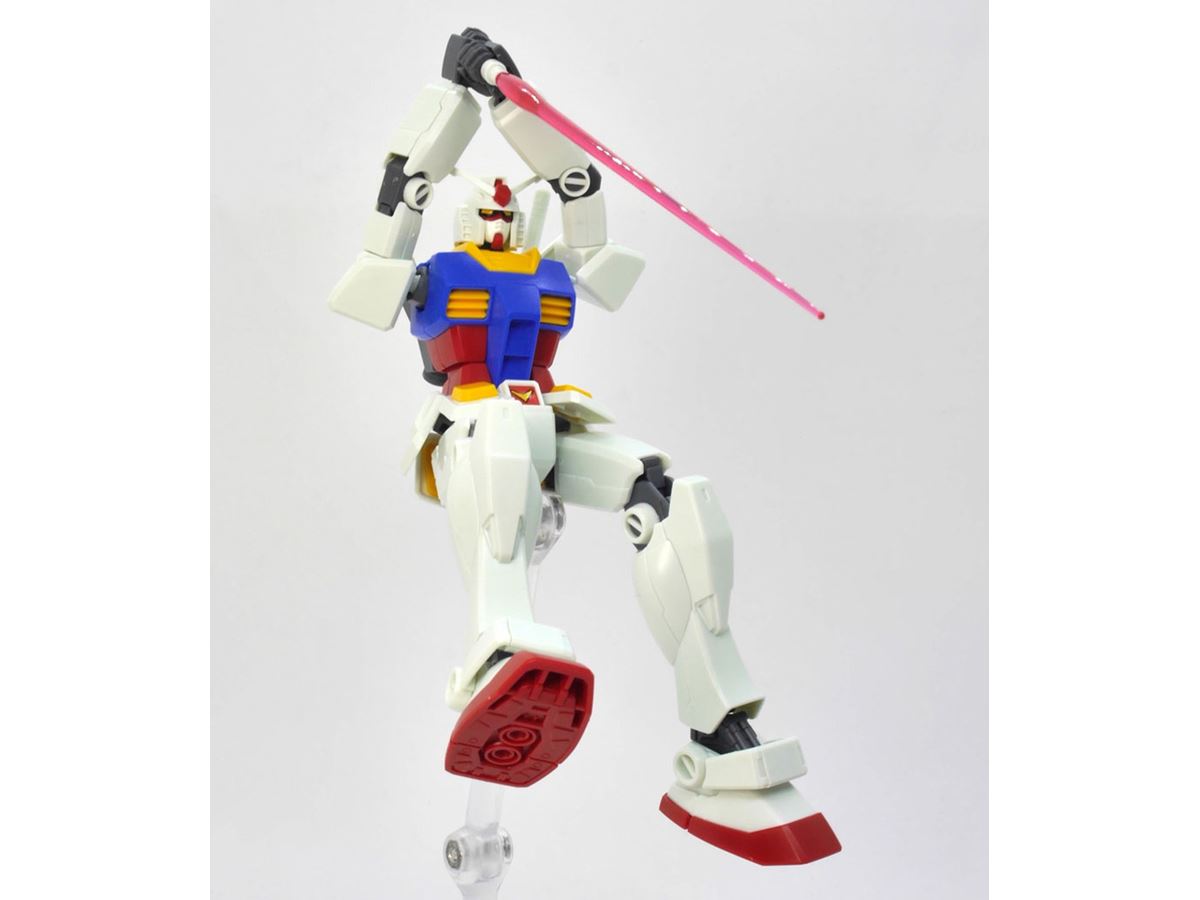 パーツ分割による色分けが進化し、ストレート組みでも満足度の高いRX-78-2が再現可能に。各関節部分にポリキャップを使用し、可動域が大幅にアップしています。
