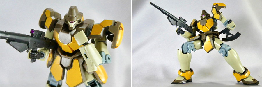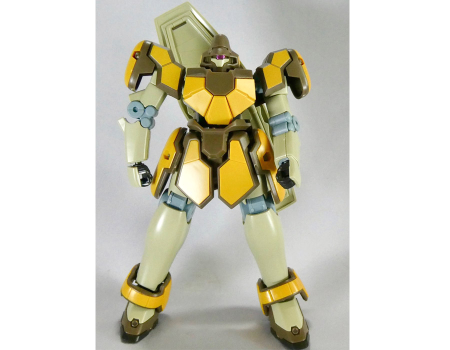 腕と脚が完成したらもうできたも同じ。顔、胴体部分、腰部分を作れば完成です。上記のようなシンプルな構造でありながら、しっかり可動しますし、プロポーションもよく、また最近のガンプラにはなかった渋めの茶色と黄土色のようなカラーもなかなかいい感じです。