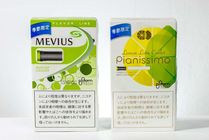 JTが販売する低温加熱方式のタバコ用デバイス「プルーム・テック」専用リフィルに、季節限定シリーズ第1弾として、「メビウス・マスカット・ クーラー・フォー・プルーム・テック」と「ピアニッシモ・レモン・ライム・クーラー・フォー・プルーム・テック」が登場。Ploom オンラインショップとPloom専門店において数量・期間限定で販売中だ。2フレーバーはともにメンソールタイプで、価格は490円(税込)となる。