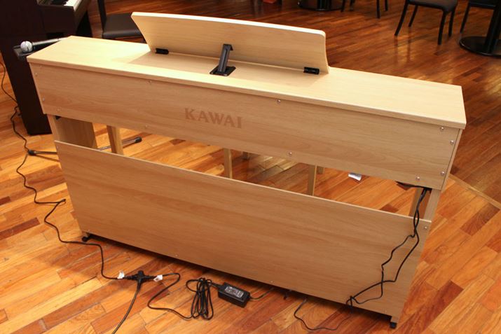 スペック的に言うと、スピーカー部は12cm口径のフルレンジユニットを左右に1基ずつ搭載する1ウェイ2スピーカー構成で、20W×2の出力を確保。近年、カワイ製電子ピアノの上位モデルにはオンキヨーのサウンド技術が採用されてきていたが、今回ついにそれがエントリークラスにも降りてきた形となる。演奏時のノイズや歪みを抑え、エントリークラスの枠を超えた美しいサウンドの再生を図っている。
