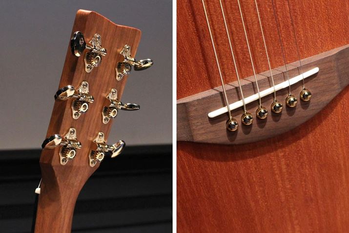 ペグ、ブリッジピンなどのパーツを、シャンパンゴールドカラーで統一。女性がピアスとネックレスのカラーを合わせてコーディネートするみたいなファッション感があってポイント高し! もちろん、それぞれの形もかわいい