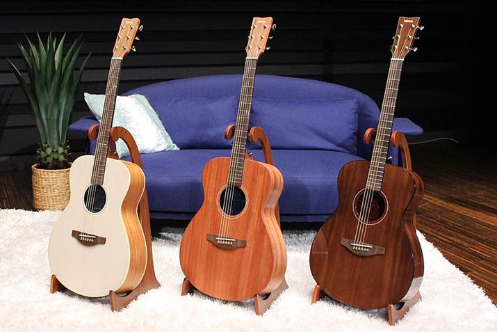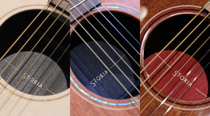 まずは、シリーズのラインアップからご紹介しよう。STORIAには、3つのモデルがある。とはいっても、ボディシェイプやスケール長などの基本設計は3モデル共通。ただ、表板素材とカラーリングがモデルごとに異なっており、これによってそれぞれ個性の違うサウンドを持っているのが特徴だ。