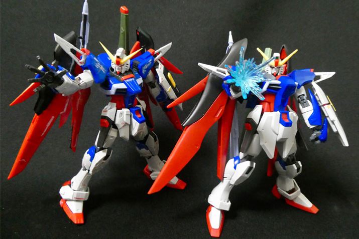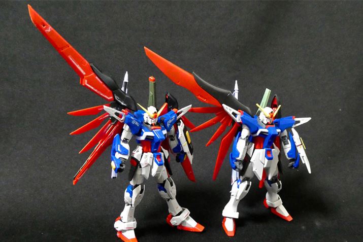 左がRGデスティニーガンダム。よく見ると腰のフロントアーマーなどが微妙に異なりますね
