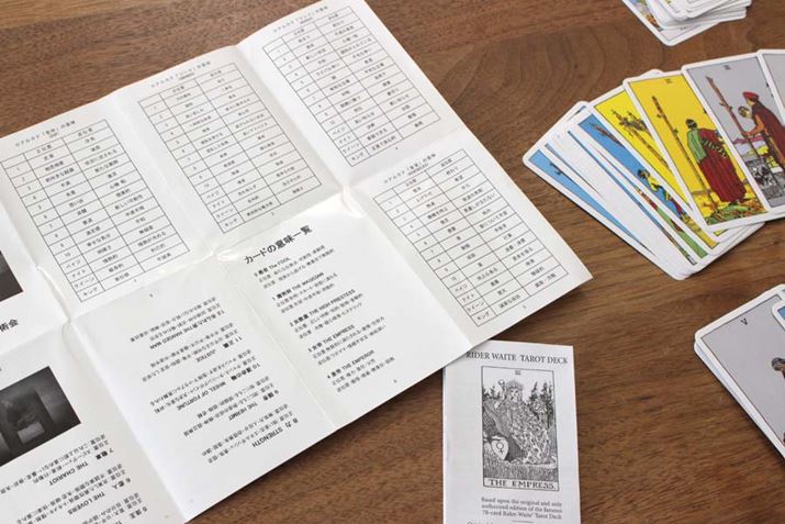 初めてタロットカードを購入するなら、日本語の解説シートが付いていたり、解説本とセット販売されているものがよいでしょう