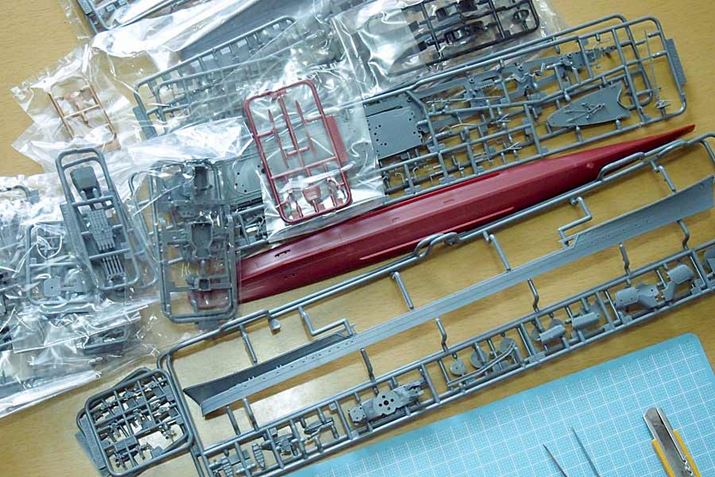いよいよ「島風」の製作開始。大まかな流れは「武蔵」と同じで、まずは船体から組み立てていき、甲板、艦橋や煙突、兵装、そのほかの艤装(ぎそう)といった順番で作っていくことになります。
