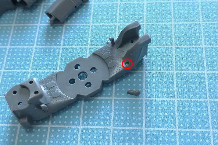 力を加減しづらい位置でもありましたが、4本のうち1本を根元から折ってしまいました(赤丸が取り付けるべき部分)