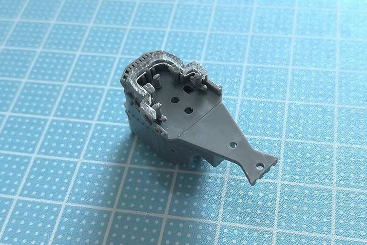 艦首部分。錨鎖の巻揚機やリールが別パーツになっているので、塗装なしでも甲板上のディテールが細かく再現されています