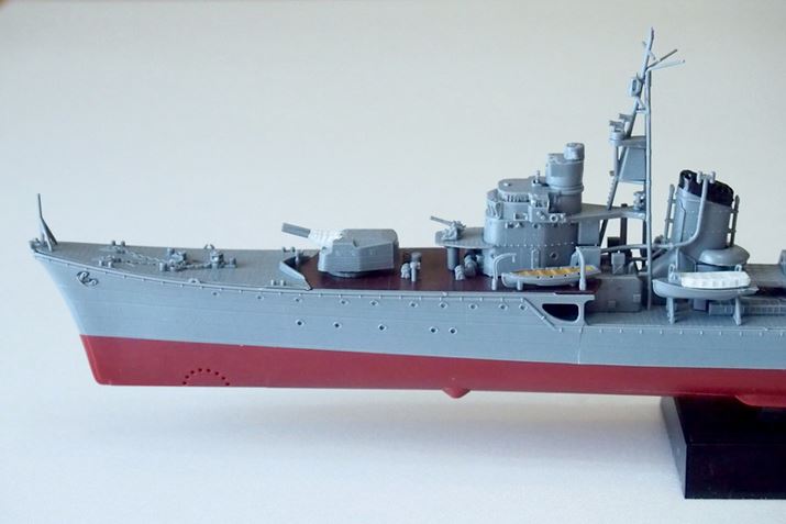流れるような曲線で描かれた船体と、不要な部分を削り落として彫り込まれたような甲板上の兵装や構造物、両者の対比にちょっと見とれてしまいましたが、まだ完成はしていません。