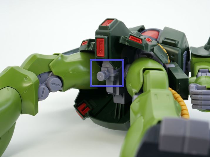 右肩のL字シールドは裏側にもモールドがあり、ジョイントパーツによりフレキシブルに可動します