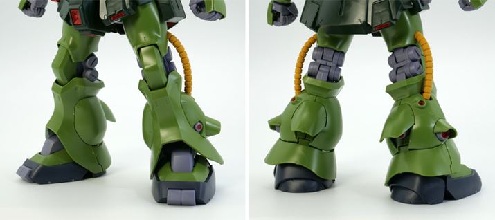 脚部はザクII改らしい、肉付きのいいプロポーションで再現されています。頭部と同様、動力パイプには軟質素材が使用されています