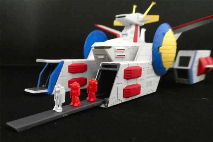 ホワイトベースといえばこの角度でしょうか。ジオン軍や今までの連邦軍の戦艦にはないスタイルですよね