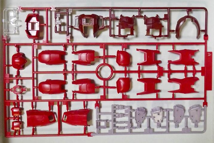 たとえばこれはランナーAですが、この1枚だけで3色の塗り分けとクリアパーツが一緒になっているという、バンダイならではの変態的技術力を実感できます