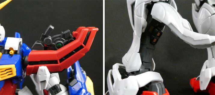 本体フレームに一体化している内部パーツも、外装パーツを動かすことによって見ることができます(肩部分はわかりやすくパーツを取り外しています)