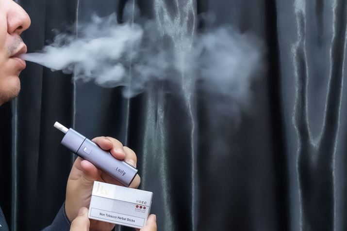 加熱式タバコのように見えるが、ノンニコチンの専用スティックとともに使用する禁煙補助デバイス
