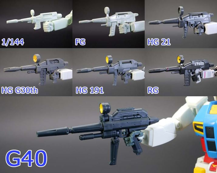 ガンダムでおなじみ、トリコロールカラーの成形色で再現されていますが、各部形状はG40独特の形にアレンジされています