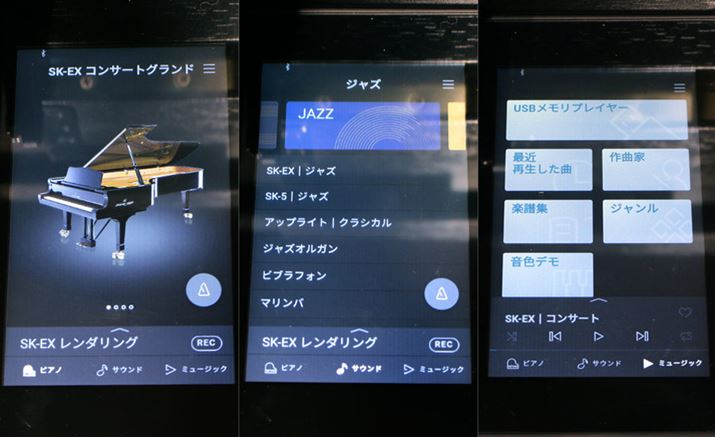 使い勝手の面では、機能切り換えを行うカラー液晶タッチパネルのUIデザインが変更され、よりスマートフォン風で操作しやすくなったのもポイント。「最近演奏した音色リスト」や「お気に入りの音色リスト」などのメニューが搭載され、スマホの音楽アプリを使うような感覚で音色切り換えや内蔵音源の再生操作が行える。