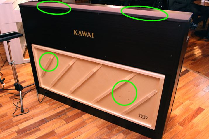 CA99も、オンキヨー製のスピーカーユニットや響板スピーカーの仕様を従来モデルから引き継いだ。スペック的には、8cm口径のトップスピーカーを4基と2cm口径のドームツイーターを2基搭載し、合計130Wの出力を確保。なお、この内部ユニットに新しくディフューザーを追加することによって、演奏音をより効果的に拡散させる設計になった。これにより、演奏者が包み込まれるようなサウンドを実現する。