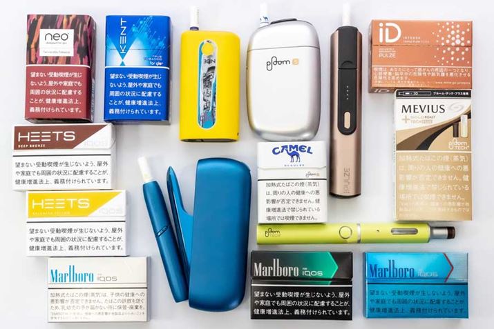 デバイスは写真上段左から、「グロー・ハイパー」「プルーム・エス2.0」「パルズ」、下段左から「アイコス」(3デュオ)「プルーム・テック・プラス」をセレクトした