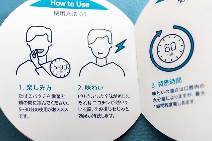 歯茎へのピリピリ感はそれなりにある。しかし1分もすれば収まり、じんじんする浸透感がやってくる。これが嗅ぎタバコを"嗅いでいる"状態となる。口の中の異物感は慣れるまでは変な感じだが、数回で慣れるので気にしなくてOKだ。使用時間は1袋5〜30分が目安である。