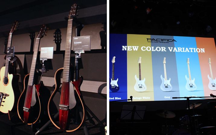 そのほか、サイレントギター「SLG200」シリーズには新カラバリ「クリムゾンレッドバースト」が登場(左)。こちらは2020年3月7日に発売予定で、メーカー希望小売価格は73,000円(税別)。また、エレキギター「パシフィカ」シリーズにも新しいカラバリが登場する(右)