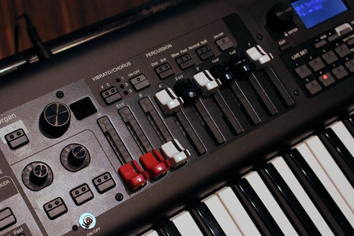 ライブ演奏をシームレスに行えるようインターフェイスにもこだわりが。ひとつのコントローラーにひとつの機能を割り当てる「One-to-One」スタイルを基本とし、ボイスやエフェクトなどの専用セクション各所にノブやボタンを配置。オルガン特有のスライド式音量コントローラー「ドローバー」も採用している