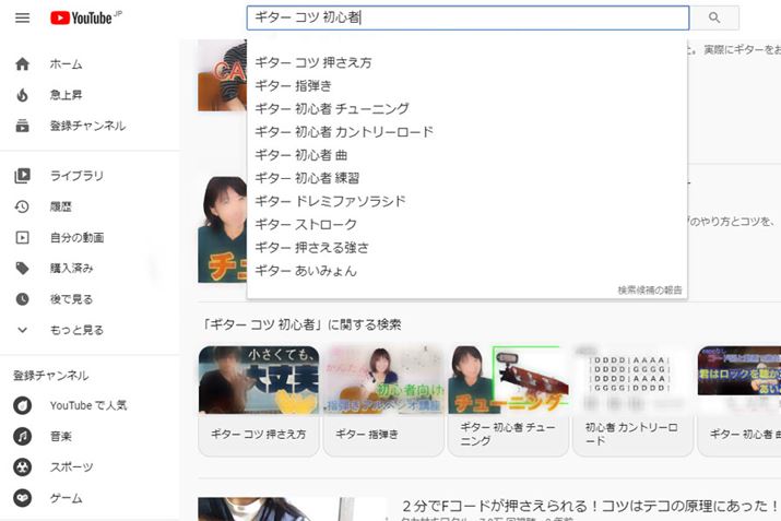 YouTubeでギターを弾くコツを検索すると、解説動画がたくさん!(画像はYouTubeより。2020年2月28日時点)しかし情報の海に溺れて、「こうすればうまくなれるらしい」「いや、こっちの情報の方が正しいみたいだ」とノウハウ難民になってしまうことも考えると、情報の少なかった時代のほうがある意味よかった面もあるのかも……?