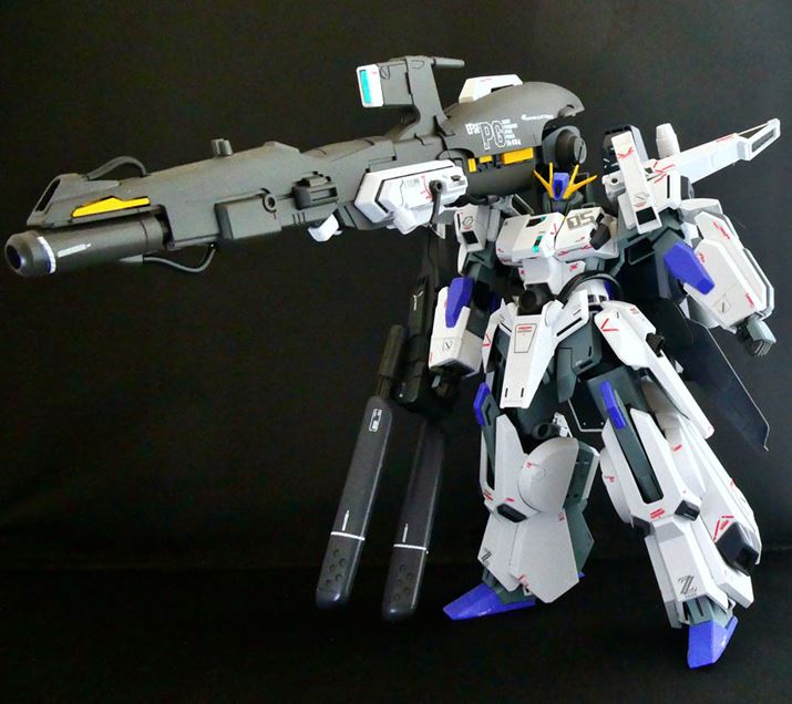 もちろん武装は大量のミサイルポッドだけではありません。2つの強力な武器を持っています。まずは、本家「ZZガンダム」も持っていたダブル・ビーム・ライフル。「ZZガンダム」のそれとはちょっと異なり、いわゆるセンチネルスタイルのビーム・ライフルになっています。