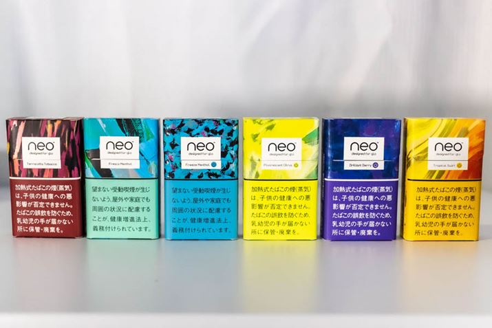 左から、「アイコス」用、「パルズ」用、「プルーム・エス」用、「グロー・ハイパー」用、「グロー」従来機種用スティック