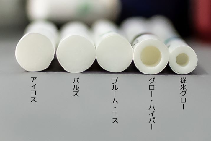 とはいえ、「グロー・ハイパー」専用スティックは、中心に空洞がある構造のため、中心加熱式「アイコス」「パルズ」は候補から外れる。長さも合わない。