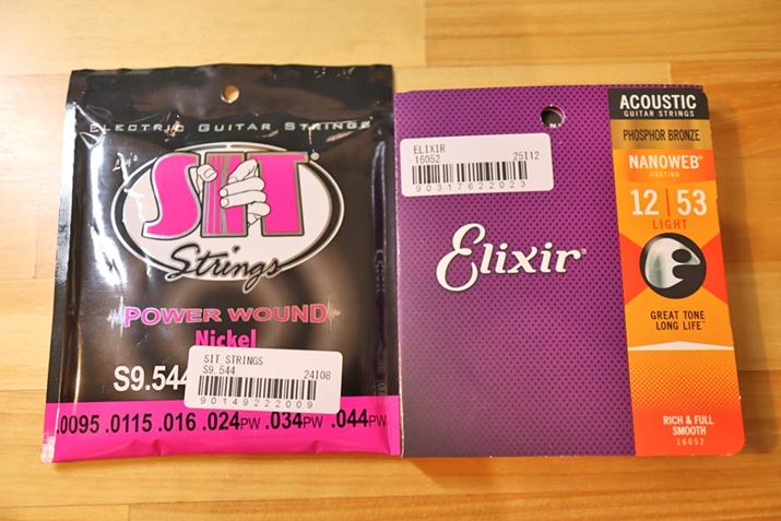 私の場合、エレキではSITというメーカーの「S9.544 Rock Light」が好きで、メインギターにはこの弦を張ることが多いです。アコギには、Elixirというメーカーの「NANOWEB Phosphor Bronze Light」という弦を張ることが多いです。