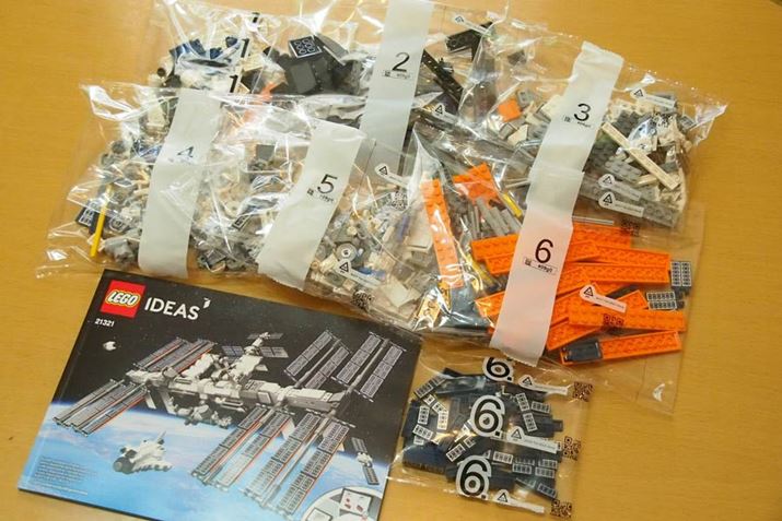 レゴの国際宇宙ステーションはピースの数が864個という大型キットで、細かな部分もあることからか対象年齢は16歳以上となっています。組み立ては大きく6ステップに分かれていて、ステップごとに必要なピースが小分けされています。900個近い大量のピースのなかから目的の1個をジャラジャラと探し出すことにならないよう、ひとつずつ順を追って開封していくのがいいでしょう。