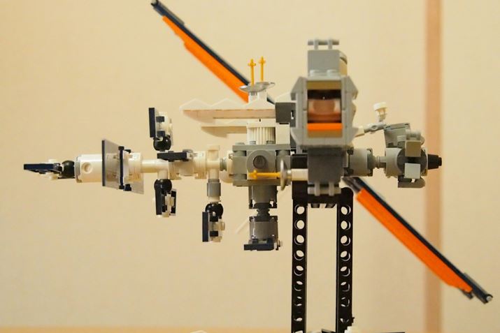 ソーラーパネルを回転させてみたところ。写真で見たISSの姿を再現できるのが楽しいキットです