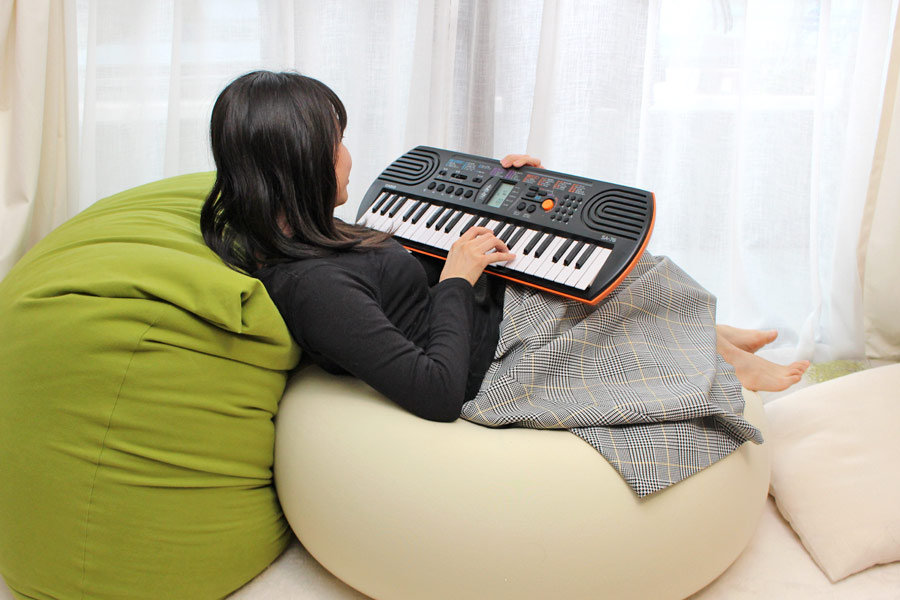 つまりミニキーボードは、搭載機能を使って遊び方を発見するのがおもしろい。ガチでピアノレッスンするのとは全然違います。「せっかく買ったから上達しなきゃ……」みたいな気負ったものがなくて大丈夫。どこでも好きな場所で、片手で軽く弾けるからこそ、気分転換になるのです。