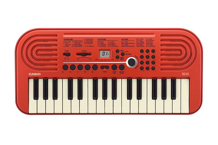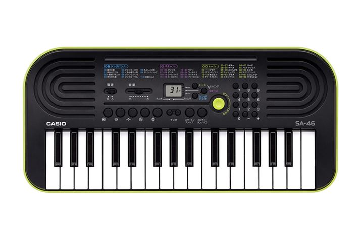 カシオのミニキーボード「SA-46」。価格.com最安価格はなんと3,273円(税込・2020年5月25日時点)です! ミニ32鍵盤を搭載し、内蔵音色は100種類、内蔵リズム数は50パターン、内蔵曲は10曲。叩いて楽しい音が鳴る5種類のドラムパッドが付いているほか、内蔵曲をレッスンできるメロディーオフ機能や、ピアノ音色とオルガン音色をワンタッチで切替できるボタンも装備