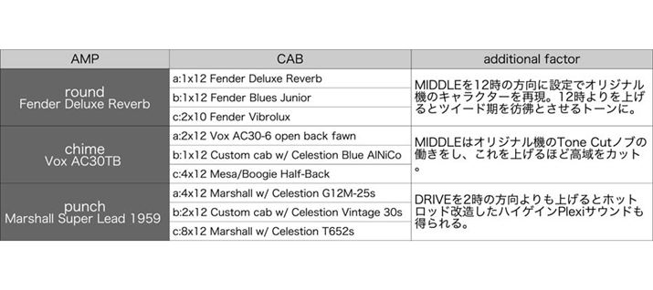 など、名アンプの個性を改めて感じられたりもしておもしろい! なお各アンプのGAIN最大は、GAIN3時から激変することはなく、素直にもうちょい歪みが増す感じです。