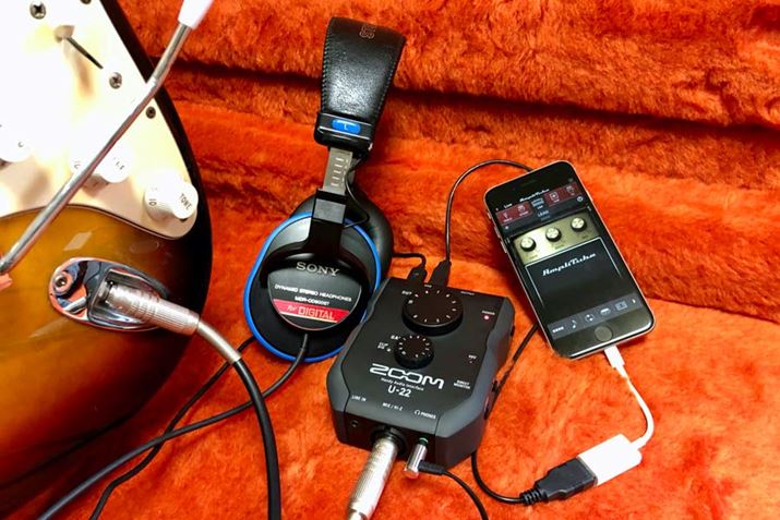 ・アプリ型アンシミュ:ギター→オーディオIF→スマホ→ヘッドホン