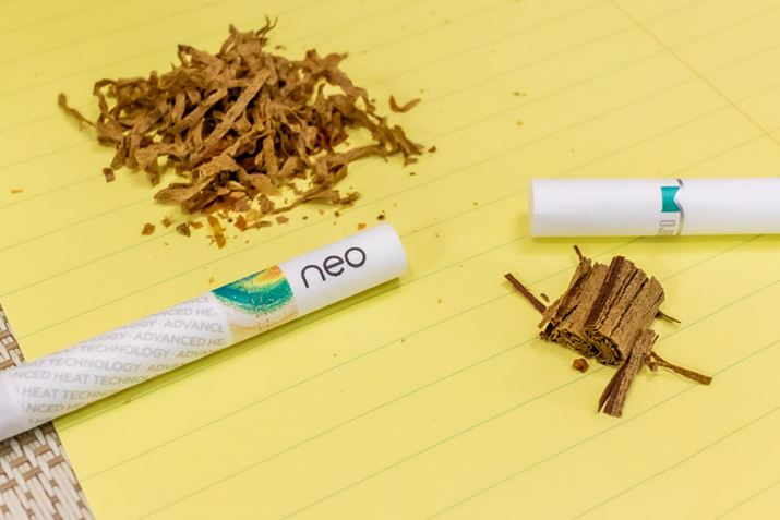 思ったより大量の葉が入っていたネオスティック(グロー・ハイパー)(左)、ギュッと葉がたたまれているヒートスティック(アイコス)(右)
