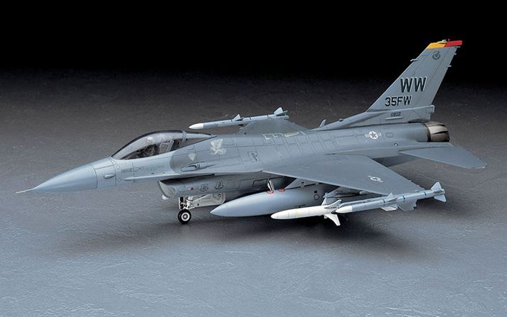プラモデル「傑作機シリーズ 1/48 No.98 ロッキードマーチンF-16CJ[ブロック50]ファイティング ファルコン」(タミヤ)。水平尾翼は可動式、主翼フラッペロンはアップ、ダウンを選択可能。パイロットの人形1体が付属する。価格は税込み3,960円