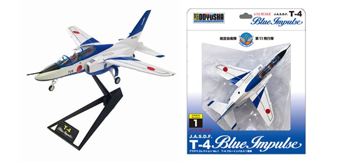 塗装済み完成品「1/72 プラチナコレクション No.1 T-4 ブルーインパルス」(童友社)。2018年2月発売だが2020年6月に再販された。価格は3,980円